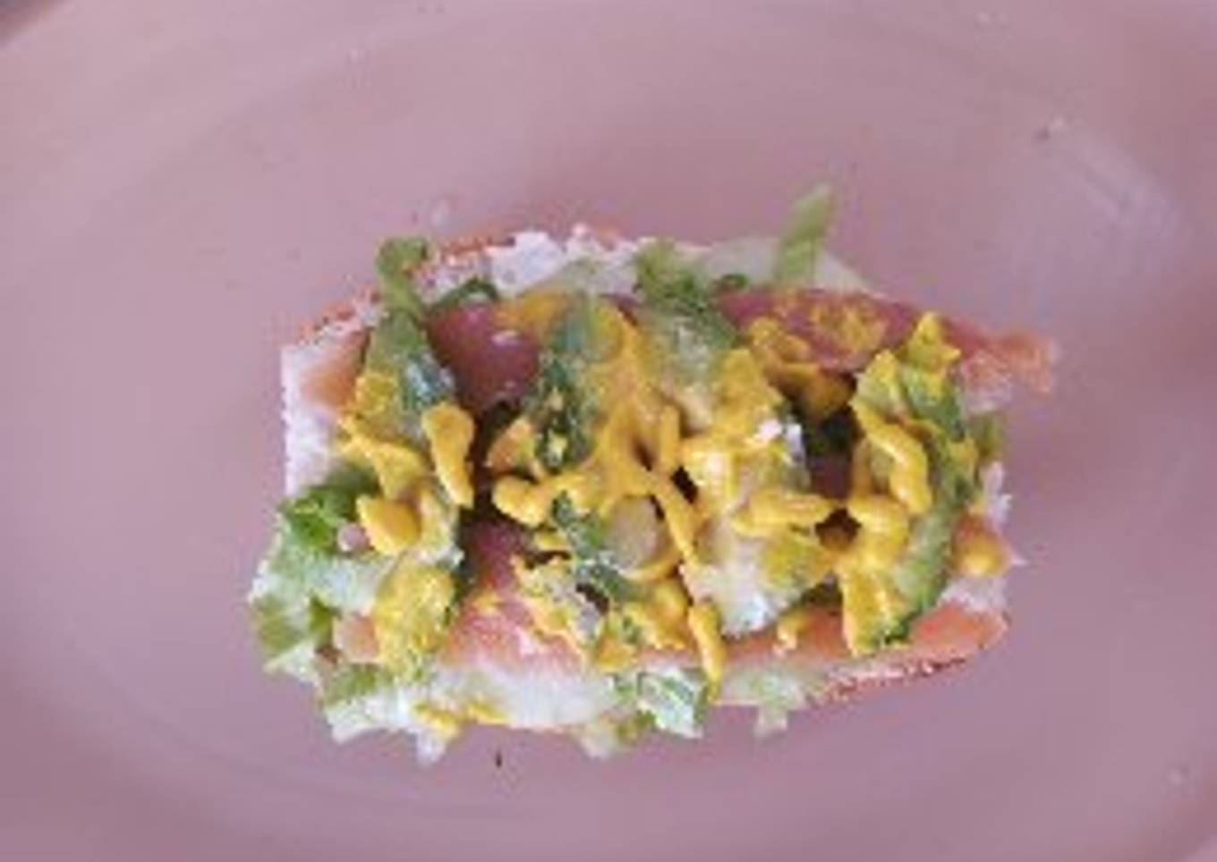 - A nuestro bolillo lo vamos a partir por la mitad y calentar un poco, le agregamos el queso crema y la mayonesa y después las verduras, le agregamos nuestro gravlax de salmón cortado en tiras y ponemos la mayonesa y el aguacate.