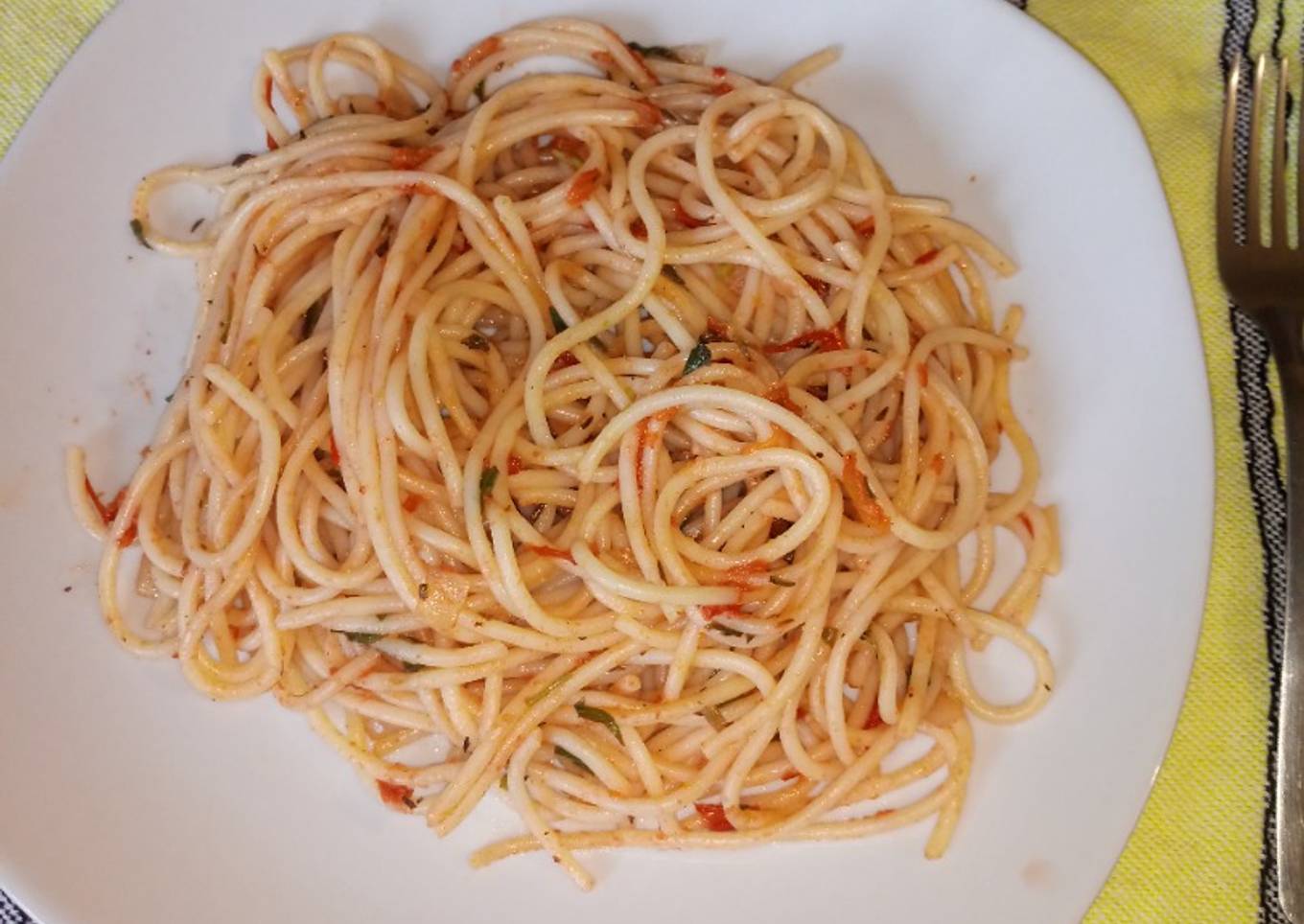 - Se pone a cocer el espagueti en una cacerola con agua, una vez que se ha cocido se tira el agua y reservamos la pasta.