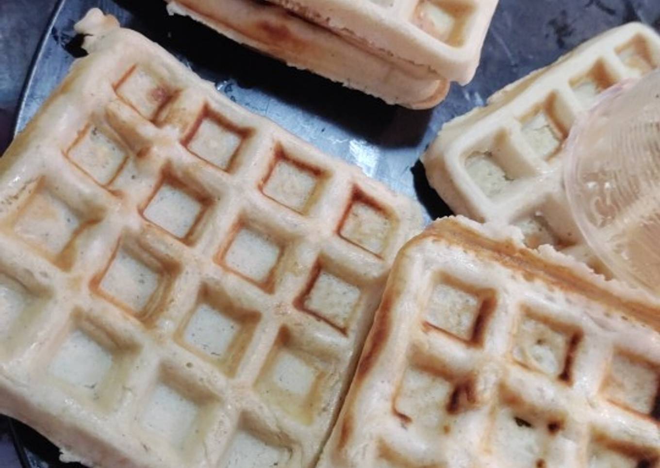 - Precalienta tu wafflera o sigue las instrucciones de la misma usa un poco de aerosol en tu waffle maker, y vierte la masa entre cada waffle engrasa de nuevo y un waffle nuevo.