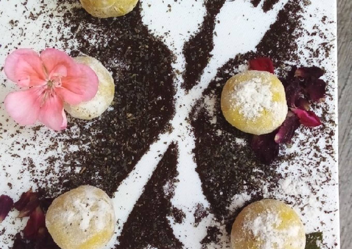 - Formar con la masa pequeñas bolitas del tamaño de una nuez, pasar por azúcar glass y colocar las en los capacillos