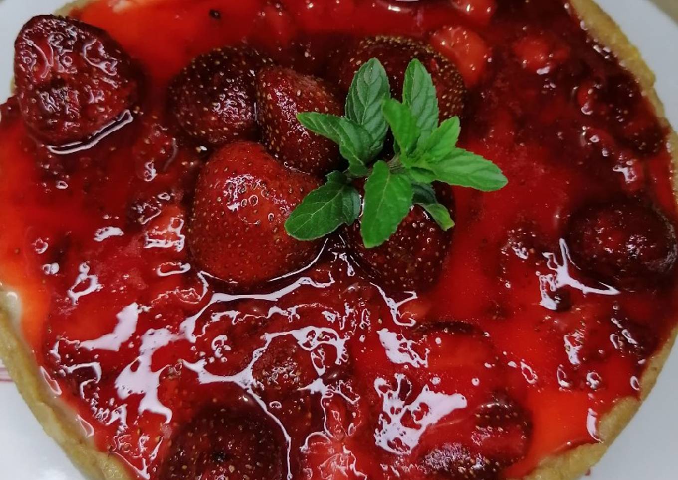 - Para la compota, en una cacerola, poner la fresa con el azúcar y llevar a fuego. Agregar agua si es necesario. Agregar la fécula de maíz hidratada con el jugo de limón.