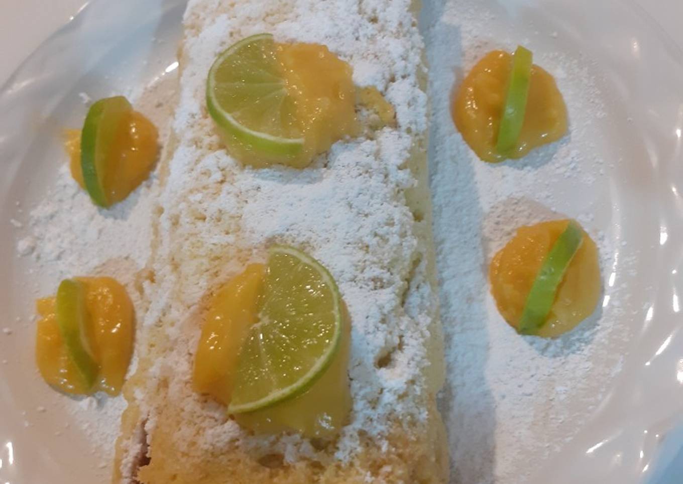 - Poner la crema de limón en el bizcocho y entollar