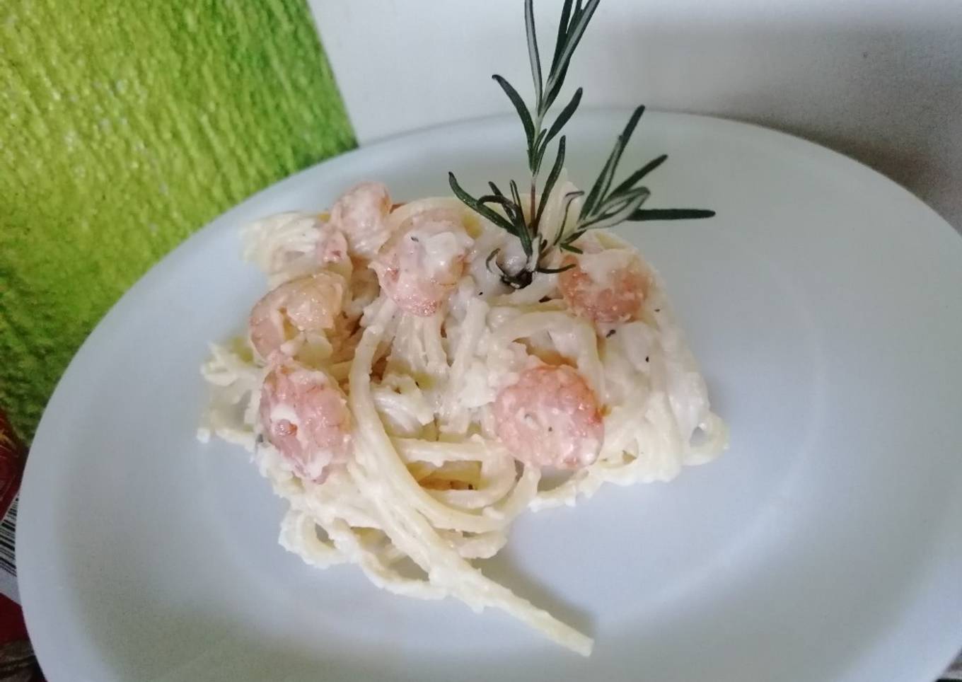 As for the number of servings that can be served to make Spaghetti con camarones is 4 personas. So make sure this portion is enough to serve for yourself and your beloved family.