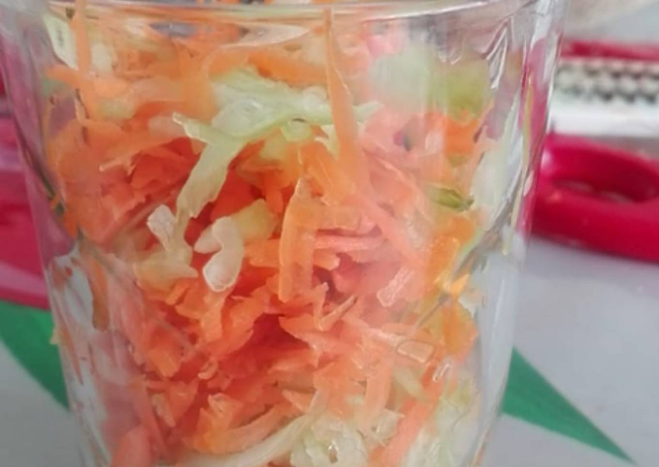 - Lavar, pelar y rallar: pepino y zanahoria.