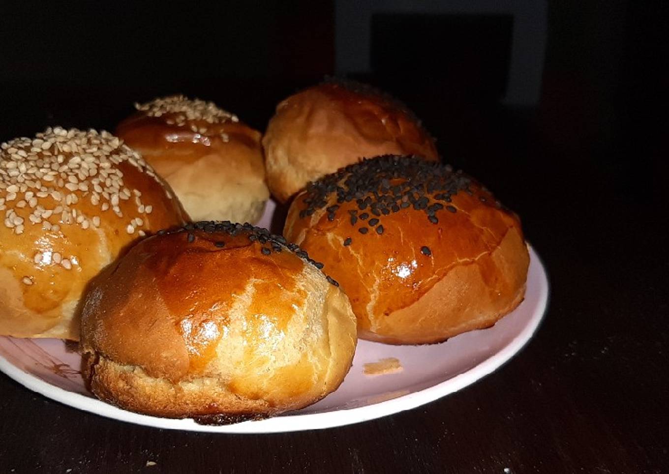 Colocar los bollos barnizar con huevo y decorar con ajonjolí.