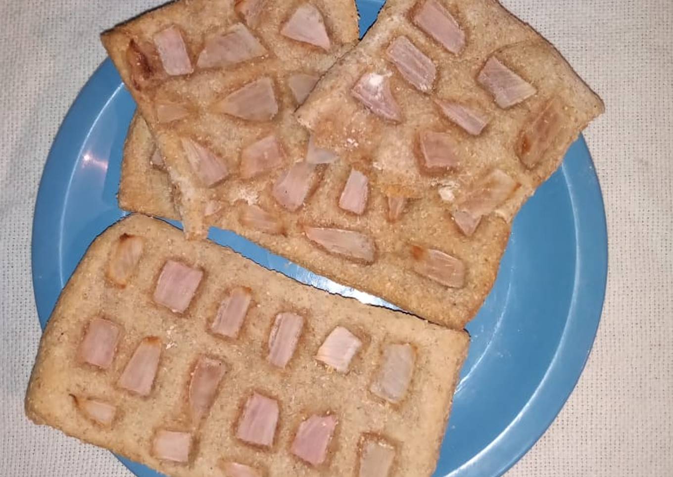 - Luego decoramos la ciabatta con pequeños pedazos de cebolla.