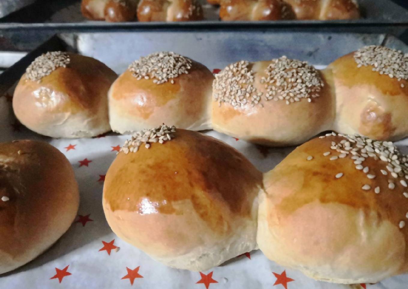 - Poner papel encerado en la charola, colocar encima los bollos, barnizar con huevo y decorar con ajonjolí negro.