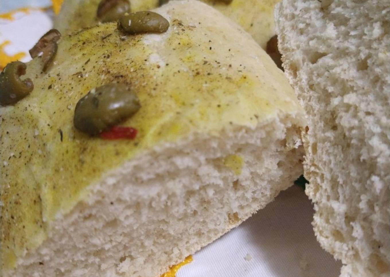 - Ponchar y estirar la masa dándole forma de rectángulo. Barnizar con aceite, agregar las aceitunas y dejar fermentar por segunda vez.