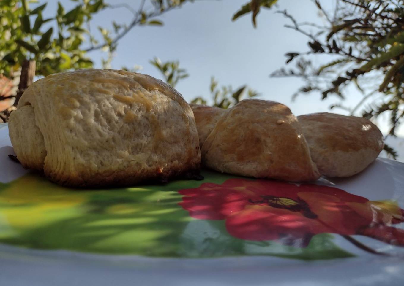 - Para los cuernitos se corta la masa en triángulo se extiende y se hace una abertura en la base, se rellena de chocolate, frutos secos y nuez.