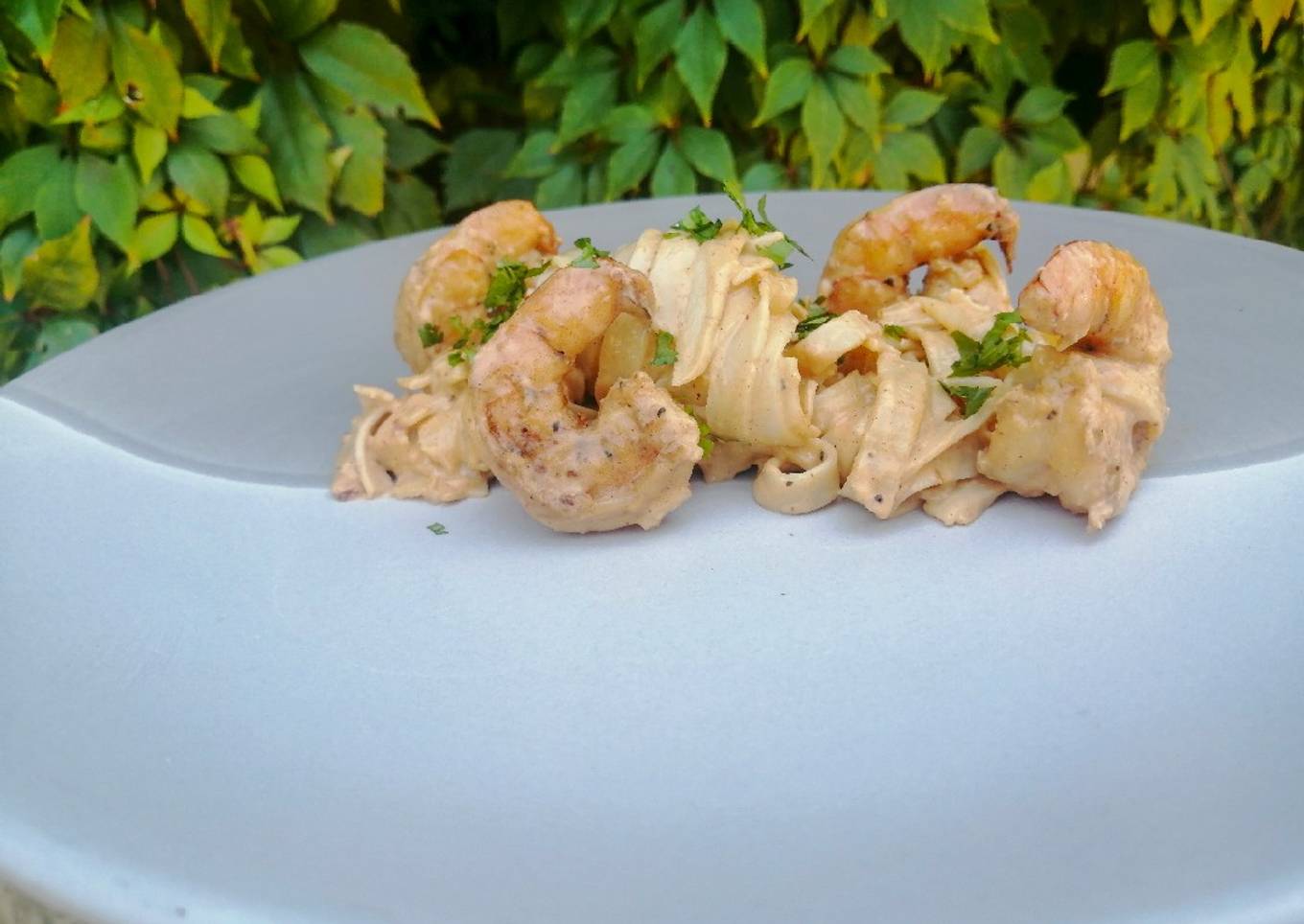 Tallarines con camarones en salsa de chipotle